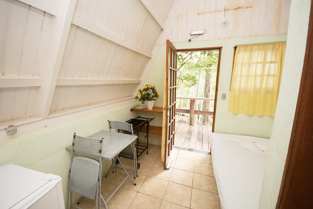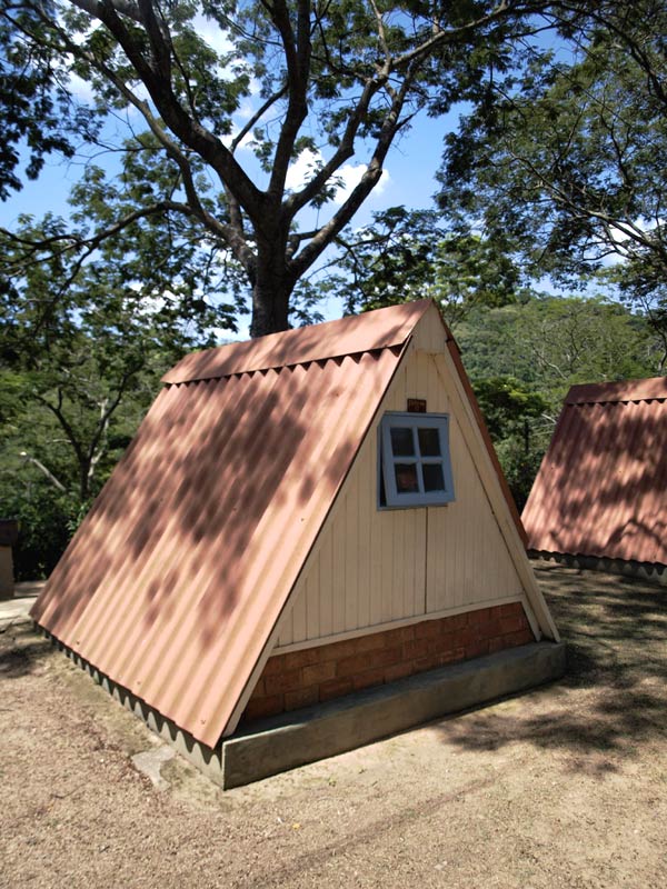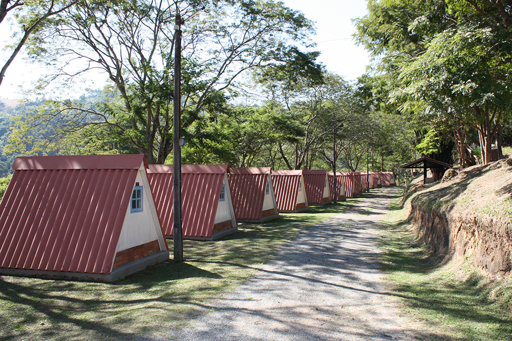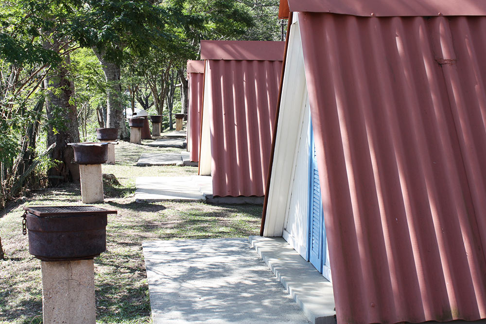 Localizada no Parque Aquático Cabreúva II, no platôs de acampamentos, com estacionamento ao lado de cada cabana (1 veículo). Perto de banheiros coletivos masculinos e femininos, com chuveiros (com aquecedor central), sanitários e pia.