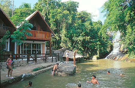 Represada através de queda d´água de cachoeira, situada próxima a portaria e aos chalés 41, 42 e 43, tendo também uma sauna seca no local.